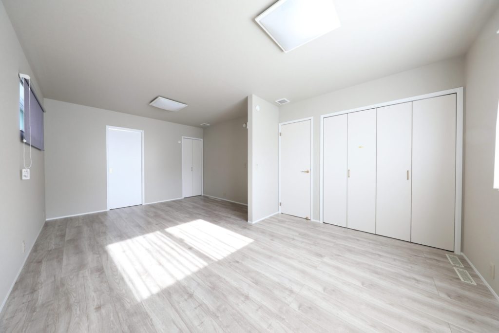 南面も道路で日当たり抜群の条件ですが、人目が気になって一日中カーテンを閉めている窓や、使うことのない庭にならないよう敢えてリビングの東面を掃き出し窓とし、その向こうに続くスペースを庭として確保しました。